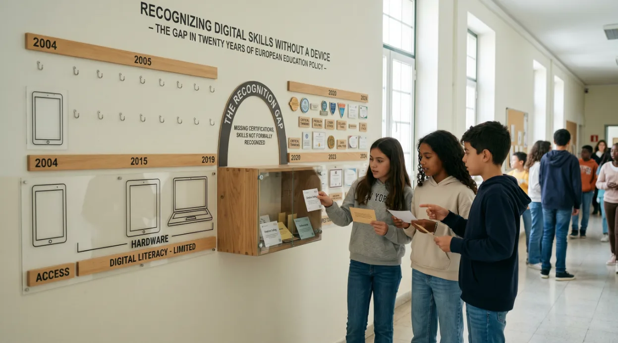 Digitale vaardigheden erkennen zonder apparaat — het gat in twintig jaar Europees onderwijsbeleid